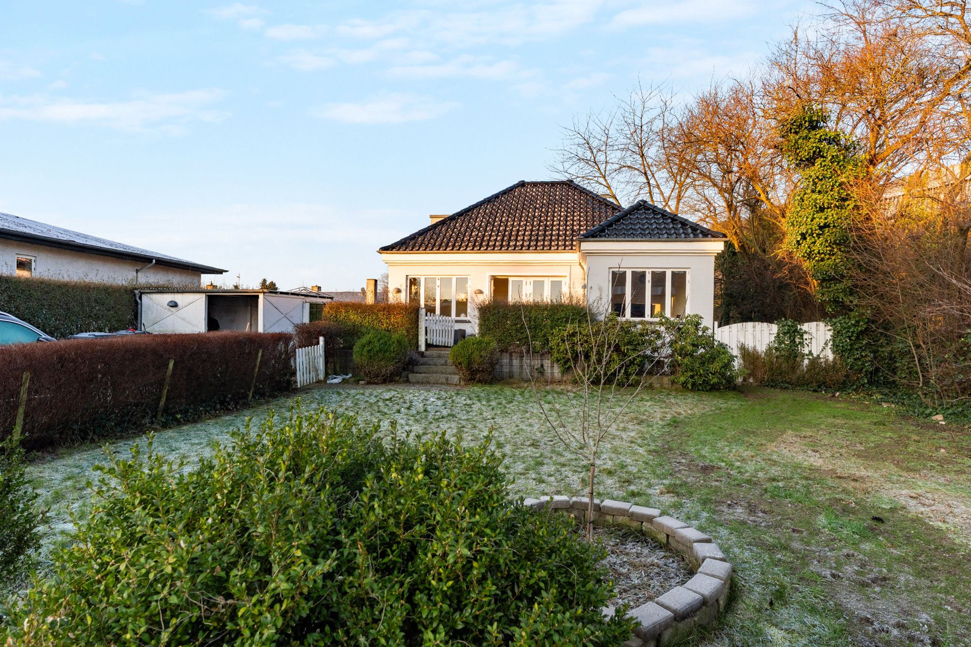 - Andre lokale forhold: Modellen for ekstremregn indikerer opmærksomhed ved skybrud pga. høj befæstelsesgrad — tjek afløbsforhold, overfladevand på grunden og faldforhold omkring huset.